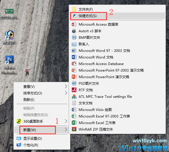1、在桌面环境下右击桌面,选择“新建”-“快捷方式”;