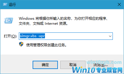 1、电脑开机进入win10系统桌面后,在键盘上按“win+R”组合键,调出运行窗口,输入命令“slmgr.vbs -xpr”;(win键是键盘左下角四个小方格一起的图标)