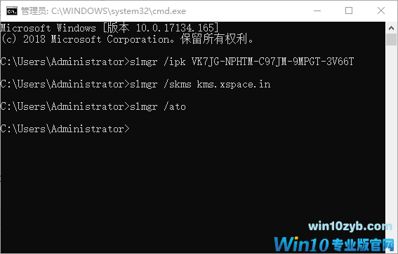 slmgr /ipk VK7JG-NPHTM-C97JM-9MPGT-3V66T 回车键