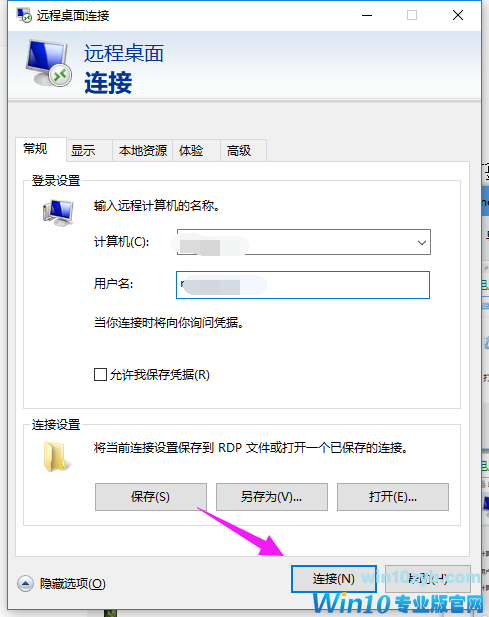 4、输入远程计算机的信息,然后点击连接。