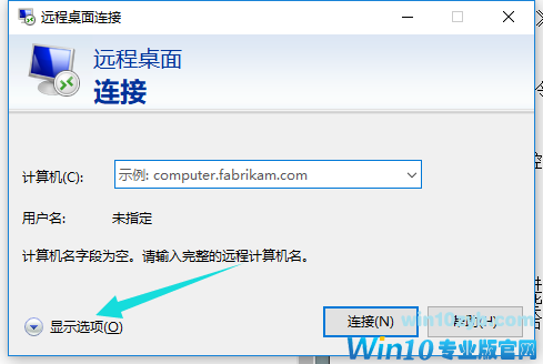 3、点击远程桌面连接窗口右下角的显示选项。