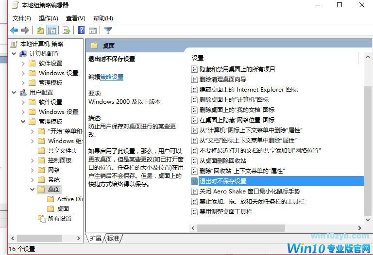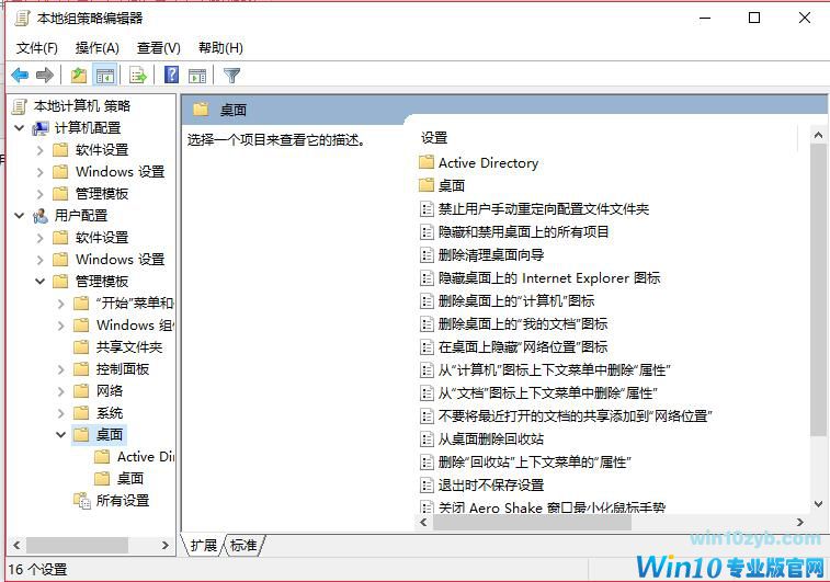 2、在本地策略组编辑器中打开用户配置/管理模板/桌面。