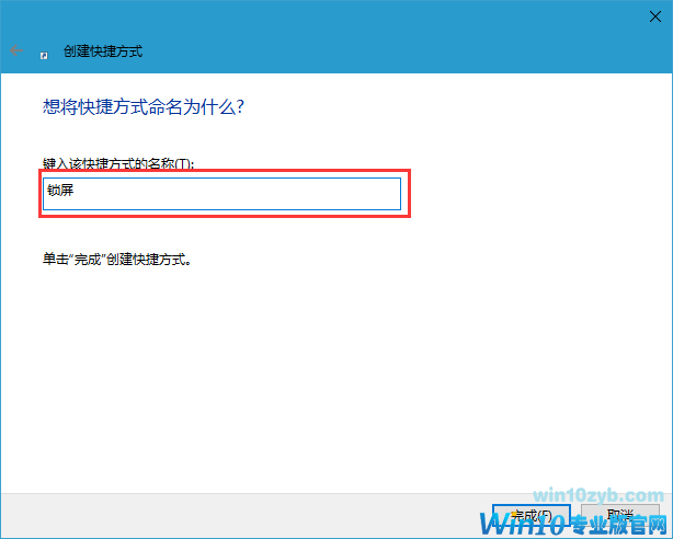3、下面设置一下我们快捷方式的名称,自己定义即可,这里取“锁屏”名称;