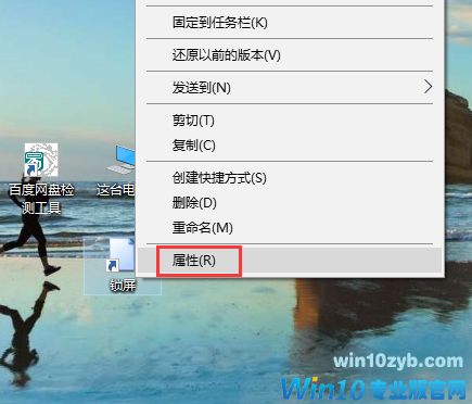 4、接着在桌面找到我们创建的取名为“锁屏”,在上面右击并选择“属性”;