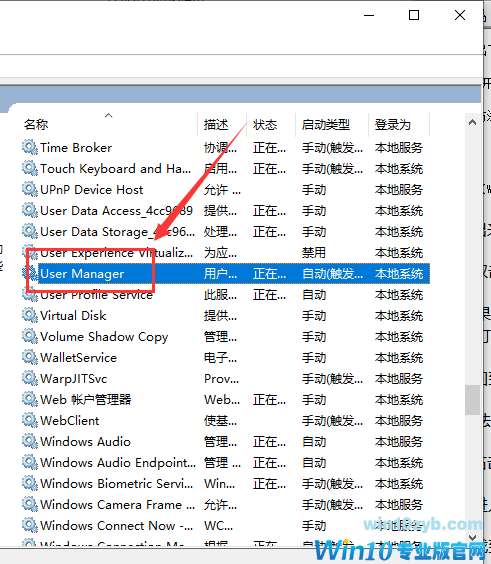 2.在弹出来的【服务】窗口中,在右侧找到【User Manager】服务