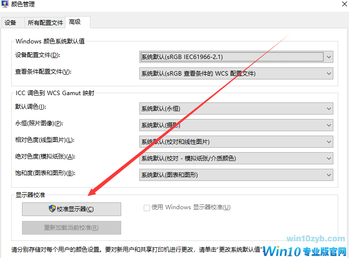 第五步:在颜色管理中——高级——校准显示器(C)