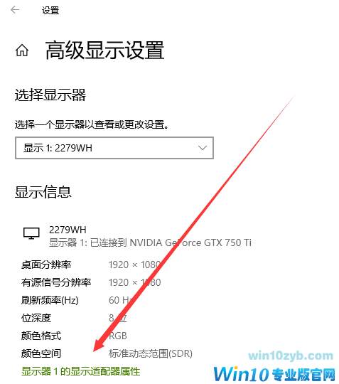第三步:在高级显示设置中,点击“显示器1的显示适配器属性”