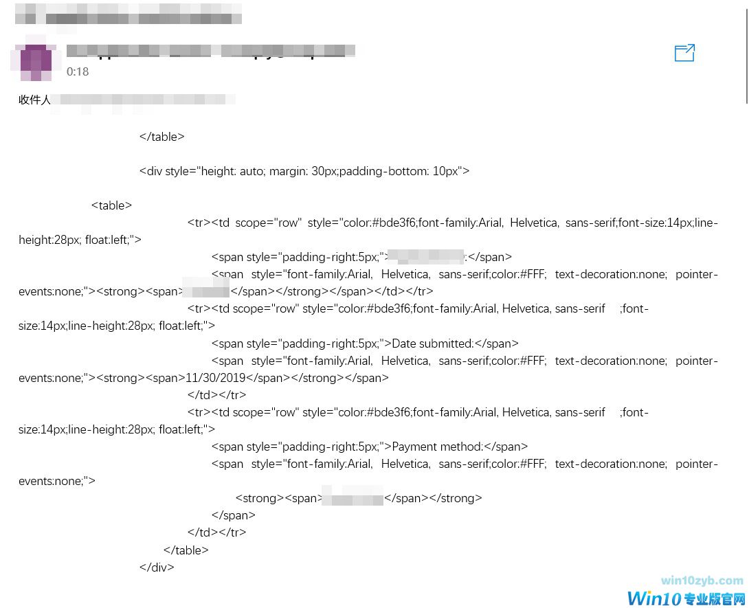 Windows 10自带的"邮件和日历"应用暂时不支持查看HTML格式的邮件;