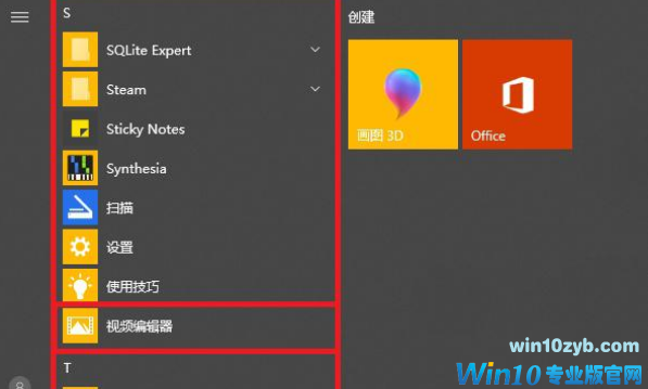 点击Win10系统左下角的【开始菜单】,在左侧列表中找到【视频编辑器(Video Maker)】即可打开。