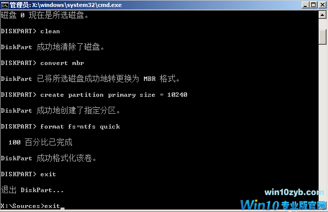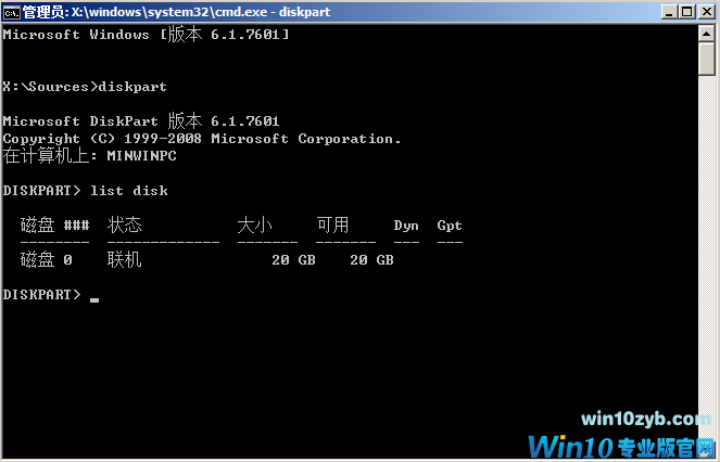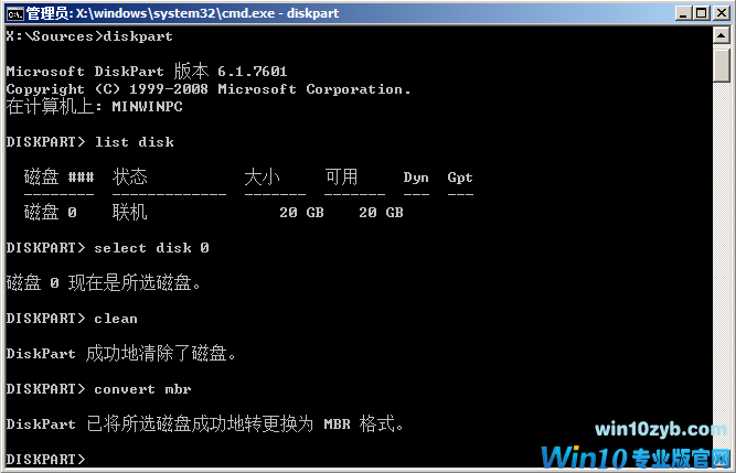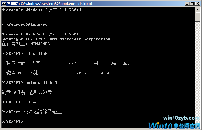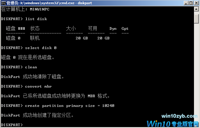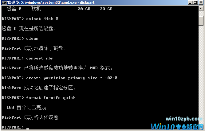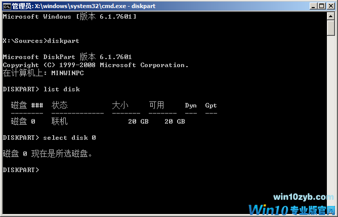 选择第0个磁盘(电脑的硬盘编号是从0开始的)
