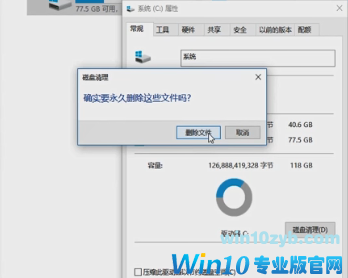 5、在出现的界面中,选择要清理的文件,点击“确定”,点击“删除文件”即可。