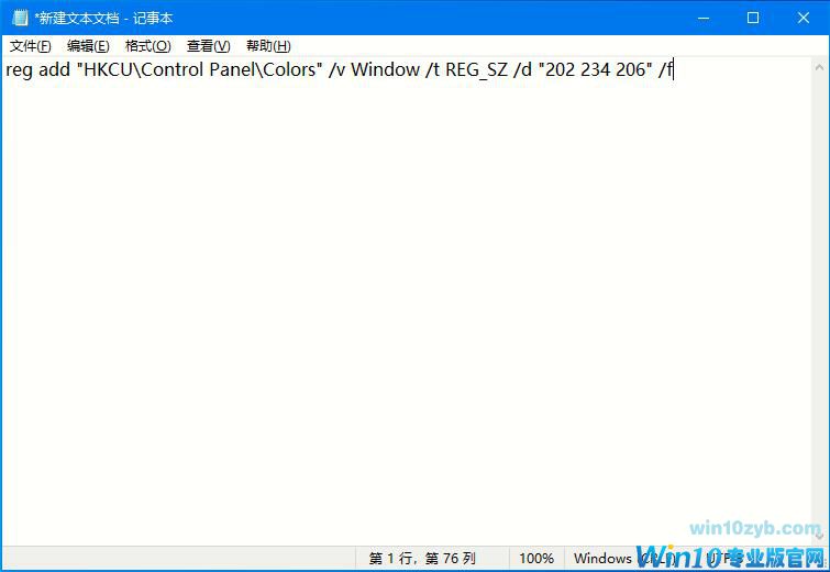 reg add “HKCU\Control Panel\Colors” /v Window /t REG_SZ /d “202 234 206” /f
