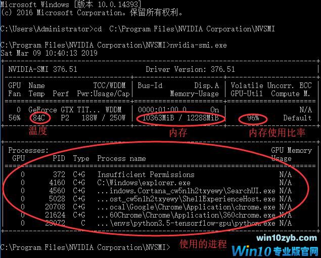 3、再输入命令 nvidia-smi.exe,即可查看显卡的整体信息。