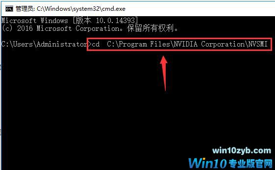 2、输入命令 cd C:\Program Files\NVIDIA Corporation\NVSMI。