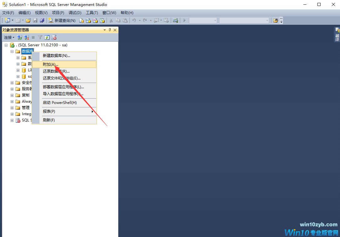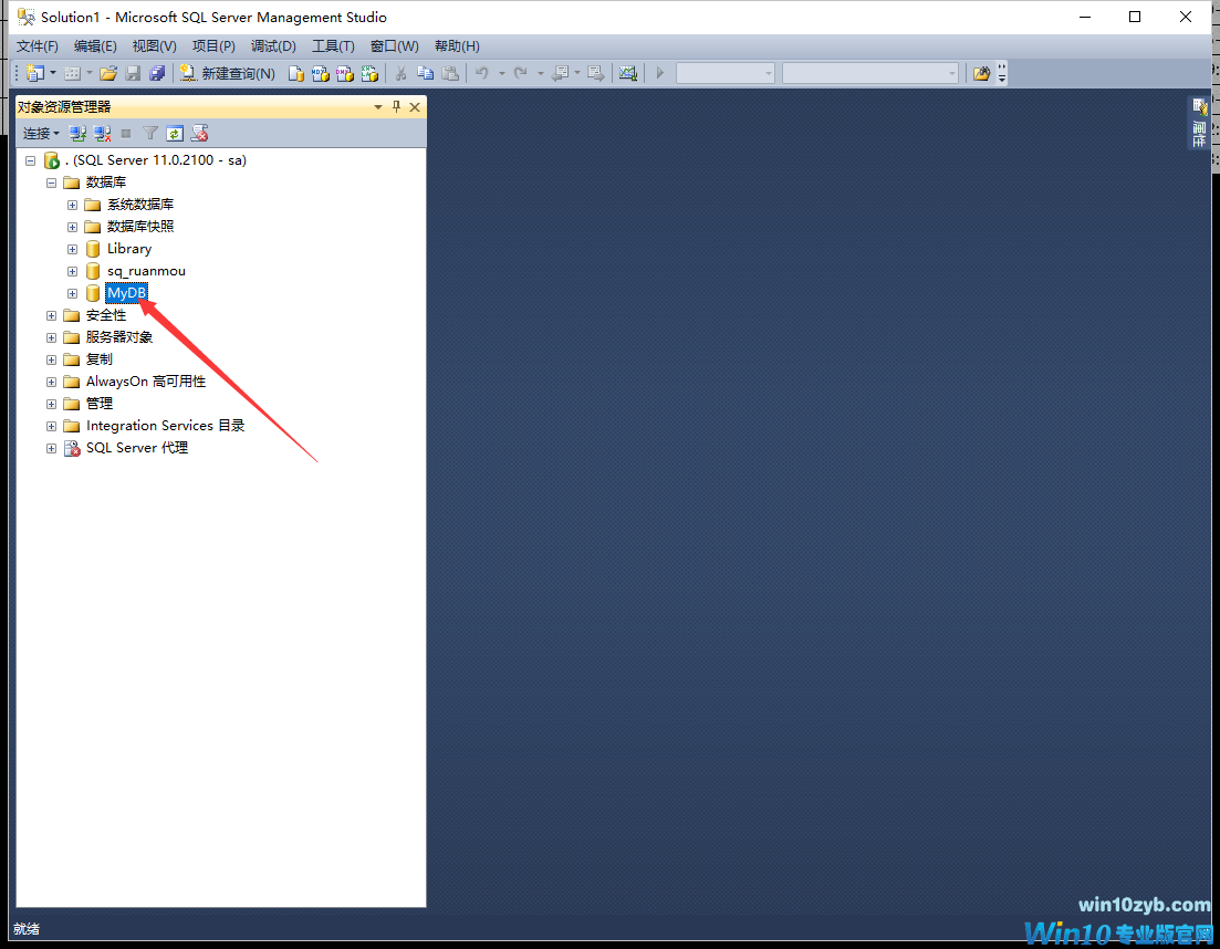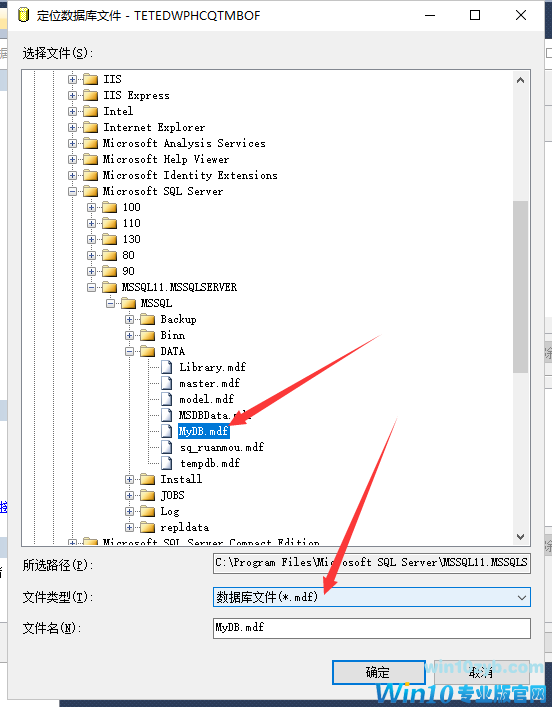 4、选中第一步添加到目录:C:\Program Files\Microsoft SQL Server\MSSQL11.MSSQLSERVER\MSSQL\DATA 里面的MyDb.mdf文件,