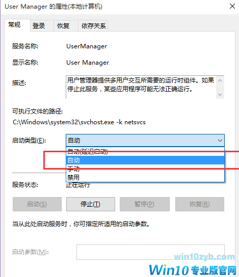 4.在打开的属性界面中将启动设置修改为“自动”选项,然后点击应用并确定即可。