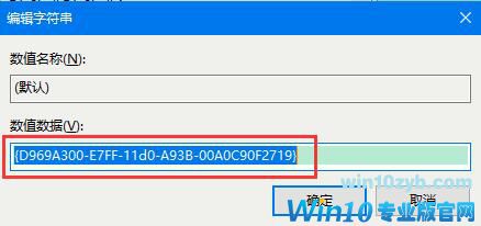 3、在右侧双击打开“默认”,将数据数值修改为{D969A300-E7FF-11d0-A93B-00A0C90F2719},确定保存;