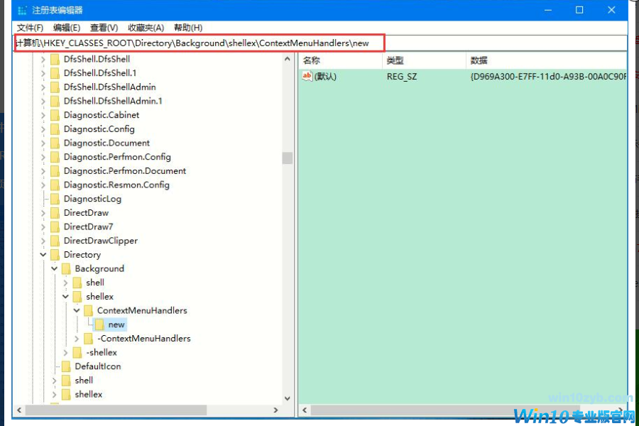 HKEY_CLASSES_ROOT\Directory\Background\shellex\ContextMenuHandlers\New,若ContextMenuHandlers里没有New项,则新建;