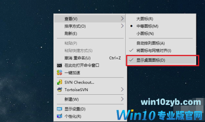 1、在win10系统上,鼠标右键桌面,选择“查看->显示桌面图标”,如下图所示
