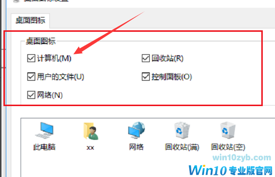 3、进去桌面图标设置界面之后,将要显示到桌面的系统图标勾选上,点击确定,如下图所示: