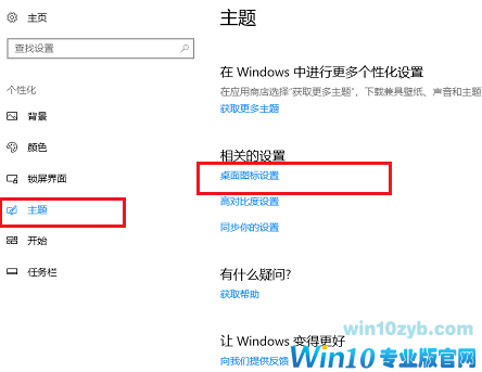 2、进去系统个性化设置之后,点击主题,选择右侧的“桌面图标设置”,如下图所示: