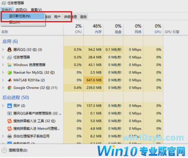 1、按ctrl+alt+delete键,打开任务管理器,点击文件->运行新任务,如下图所示