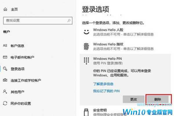 1、按Win+I打开设置,选择账户,点击登录选项,如果需要修改PIN码,就点击更改按钮即可,输入目前的PIN码和新的PIN码即可。如果删除PIN码,就点击删除按钮;