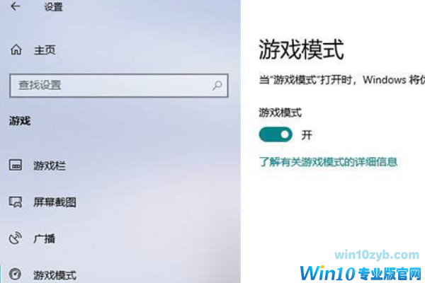 注:“游戏模式”在Win10中是默认开启的,但有些系统可能会被关闭,建议自行检查一下。