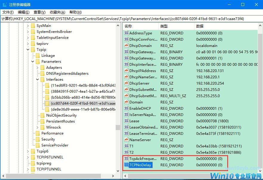 Win10并未提供Nagle的开关选项,要想关闭这一算法,需要修改注册表: