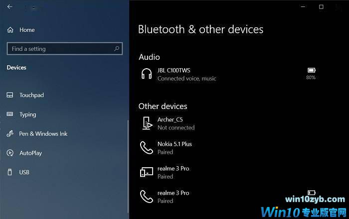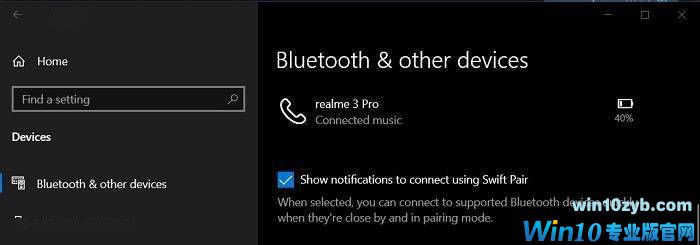 接着指定要使用的音频源(移动设备),配对完成之后,该设备的名称就会出现在“蓝牙和其它设备”的页面中。
