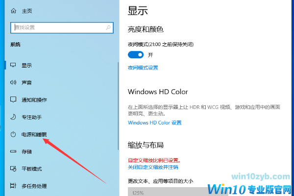 点击左侧边栏中的“电源和睡眠”;