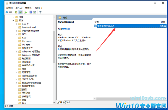 打开右侧窗口的“要求使用快速启动”服务;