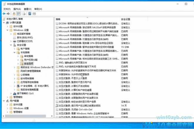 计算机配置----Windows 设置----安全设置----本地策略----安全选项;