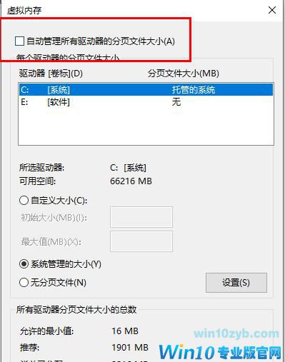6、取消“自动管理所有驱动器的分页文件大小”前的√即可。