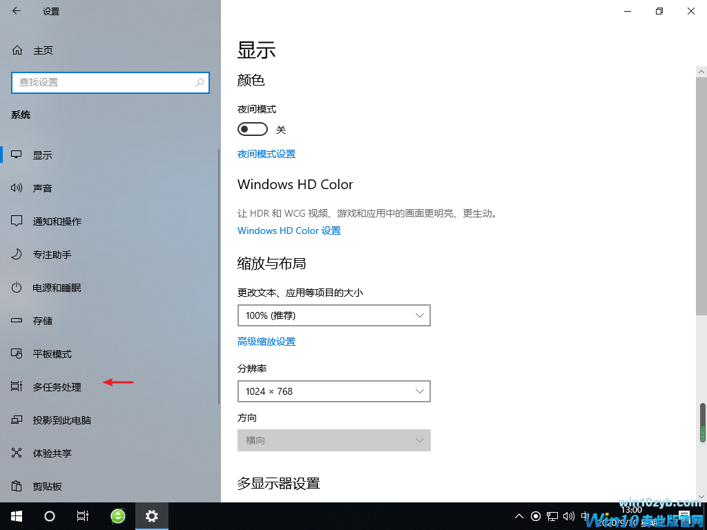 2、接着我们点击系统按钮,在接下来的呀二面,点击多任务菜单项。