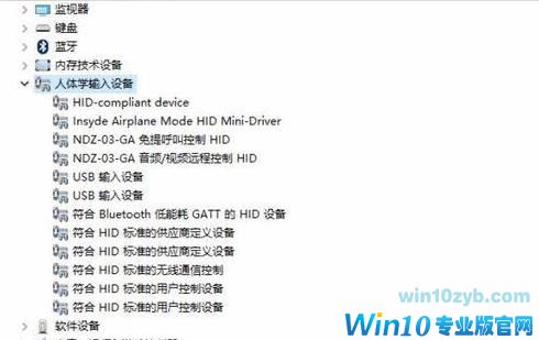 4、在设备管理器中双击“人体学输入设备”打开子项目,选择“允许计算机关闭此设备以节约电源”,