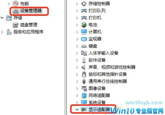 2、随后进入管理界面点击“设备管理器—>显示适配器”。