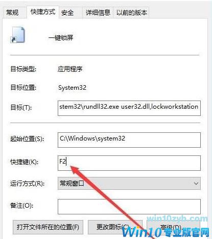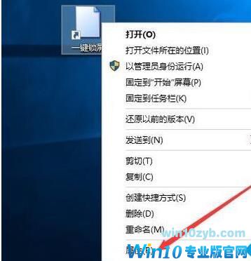 4、此时右击桌面的一键锁屏快捷方式,选择“属性”。