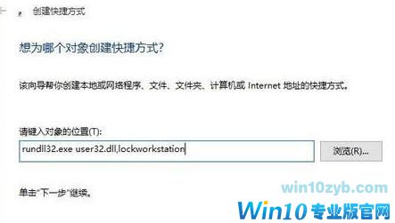 2、在弹出的窗口文本框中输入命令:rundll32.exe user32.dll,lockworkstation。