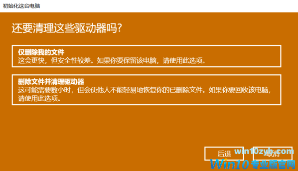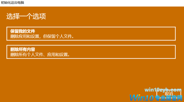 3、根据个人需要,选择合适的选项。保留我的文件:删除应用和设置,但保留个人文件;删除所有内容:删除所有个人文件、应用和设置。