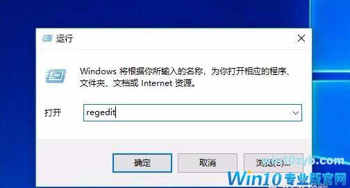 2、这时会打开Windows10系统的运行窗口,在窗口中输入命令regedit,然后点击确定按钮。