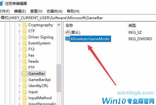 5、接下来把刚刚新建的注册表键值 重命名为AllowAutoGameMode。