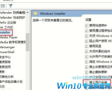 3、在界面中依次展开:计算机配置-管理模板-windows组件-windows Installer,如下图所示。