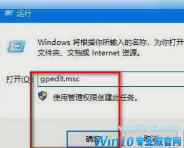 2、随后输入gpedit.msc命令回车(点击确定),如下图所示。