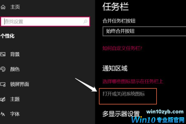 2、在任务栏设置窗口中,我们点击:打开或关闭系统图标;如下图所示: