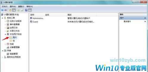 5、进入计算机管理界面,依次点击【本地用户和组】【用户】;