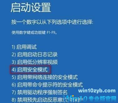 5、重启到启动设置页面后按F4键“启用安全模式”;