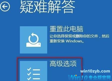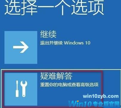 1、此情况可以长按电源键强制关机再开机看到win10登陆界面时再次长按电源键强制关机,如此三次后再开机会看到“查看高级修复选项”的按钮,点此按钮会进入WINRE环境,选择“疑难解答”;