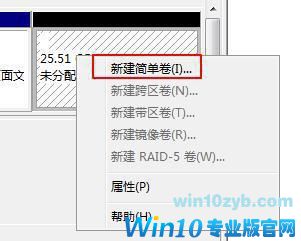 5、鼠标右击刚刚增加的分区【未分配】,选择【新建简单卷】。