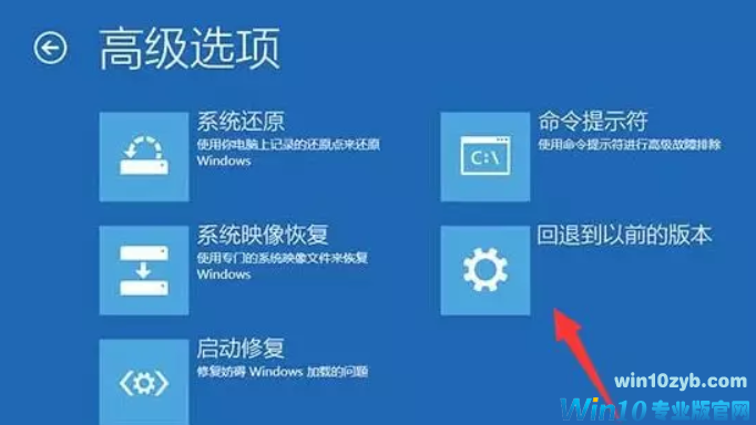 3、在高级启动下,点击回退到以前的版本,这时win10电脑会自动重启并进行回退操作。